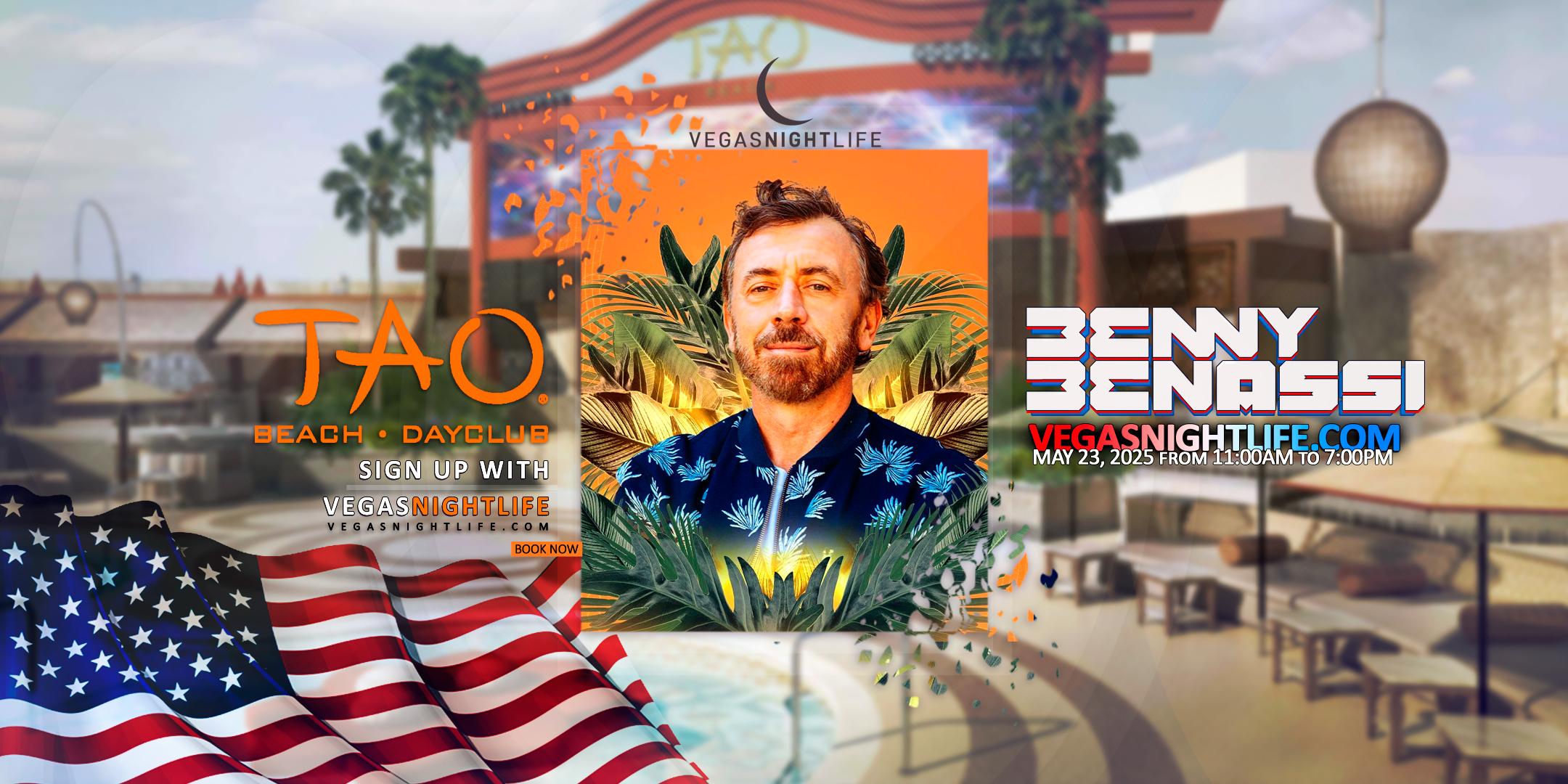 Craving the ultimate Memorial Day holiday pool party Vegas has to offer? Dive into the City of Sin with a fun day under the sun ☀️ and Edm superstar BENNY BENASSI performing LIVE at TAO Beach Club in Las Vegas on Friday, May 22nd 2026, at 11:00 AM.